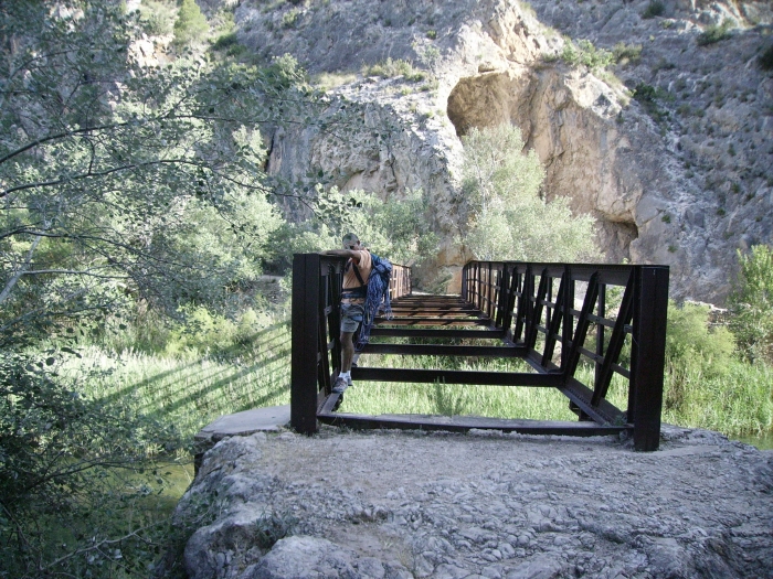Tras cruzar el puente metálico hay que tomar una ancha senda que sale hacia la derecha, siguiendo el cauce del río. Poco después hay que remontar la ladera en dirección a la parte sur del Torreón, siguiendo las trazas de senda, hasta alcanzar un collado, justo en la base del Torreón.