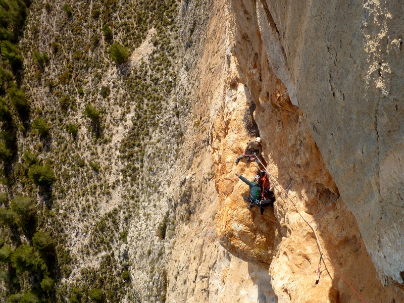 Antes de abandonar el sendero conviene intentar localizar el comienzo de la vía elegida ya que desde este punto se tiene una buena vista de la pared de en frente.