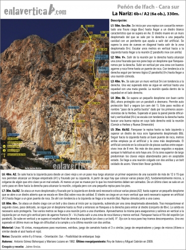 | La Nariz | 6b+/A2 | clásica | Sudoeste | 8 |