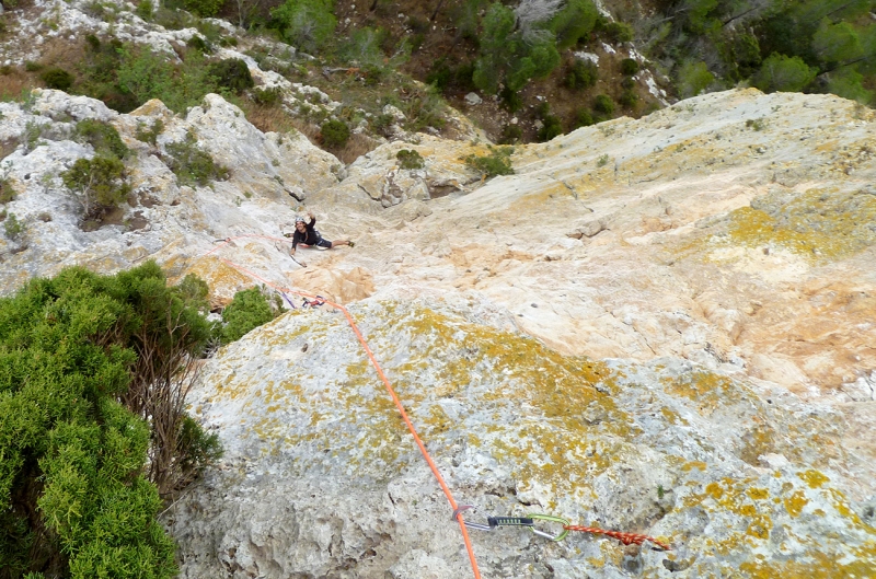 Bonita placa con algunos pasos técnicos sobre roca blanquecina de muy buena calidad.