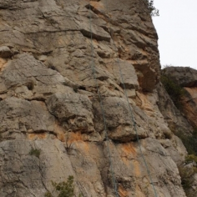 Punto rojo | 2 | Sin duda, la más fácil de las 2 vías del sector. Buenos agarres en todo momento, sin embargo, la roca hay momentos en los que te pincha un poco los dedos. Quizás es un V+, pero no sabría decir con certeza porque llevo poco escalando. A mitad vía me encontré un maillón en un paso que no me pareció especialmente complicado, quizás la parte más difícil e interesante está llegando a la reunión. |