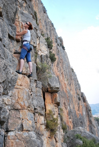 Vía divertida. Sale en un ligero desplome. Obliga a tirar de brazos en un par de pasos.