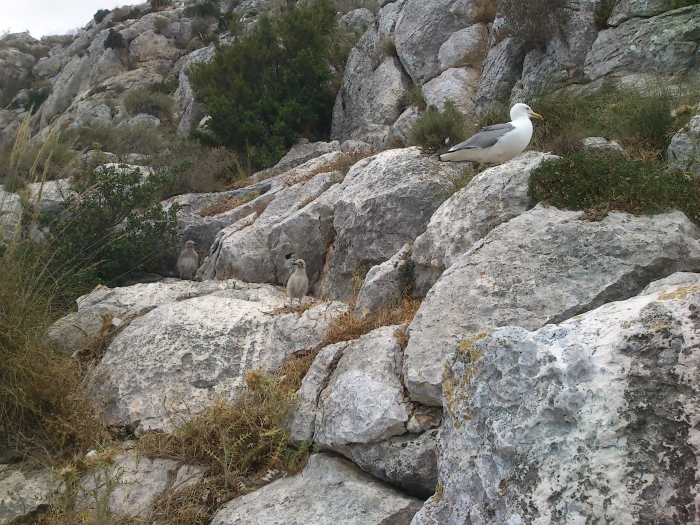 Seguimos el diedro por terreno sencillo y muy disfrutón sorteando una serie de curiosas formaciones hasta llegar al hombro desde donde contemplaremos la otra vertiente del Peñón, el puerto, el pueblo, las salinas...