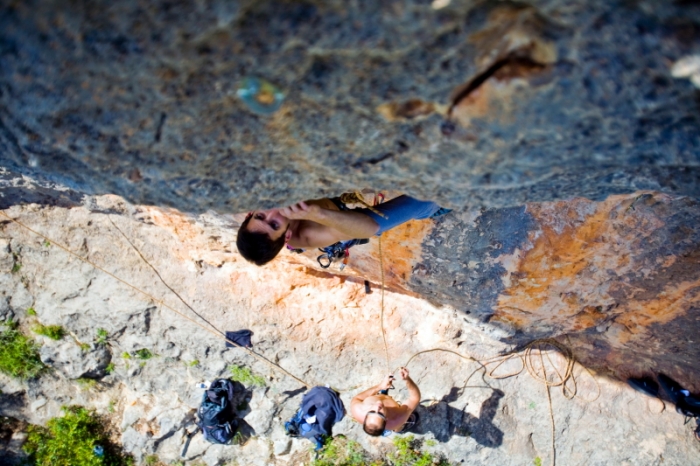 Descuelge desde dos argollas. Comparte reunión con la vía Rinoceronte 6c.