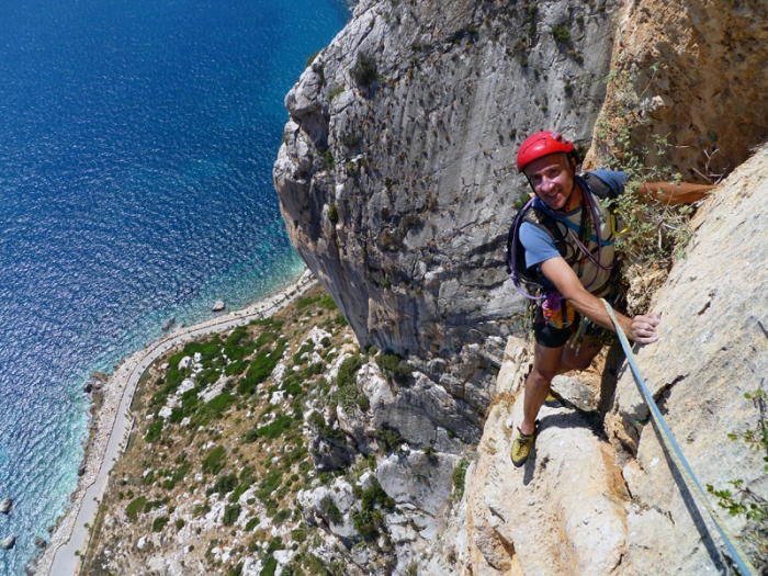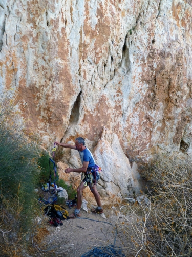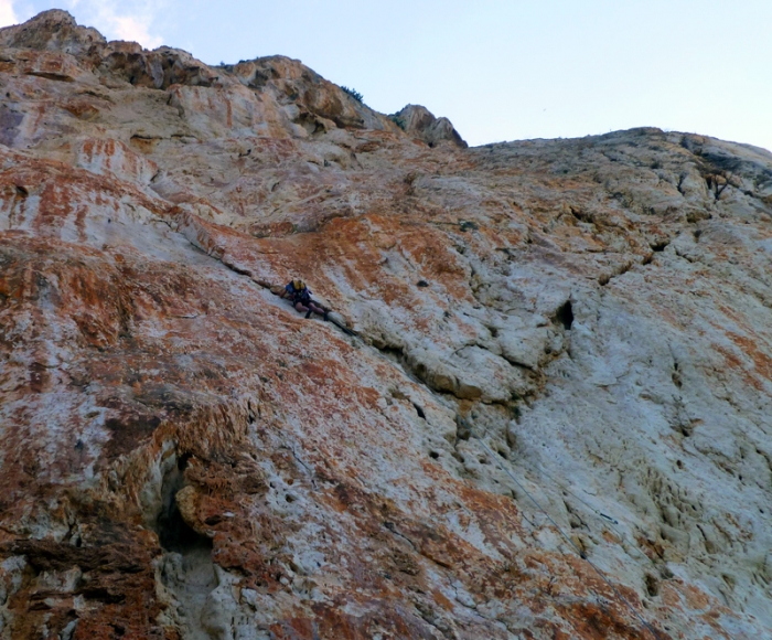 Aunque está bastante equipada con parabolts, en ocasiones estos alejan muy considerablemente por lo que seguramente necesitaremos emplazar seguros flotantes, sobretodo en los últimos largos.