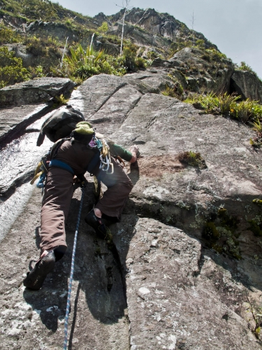 El segundo largo sale con un pequeño paso de bloque, que de da el grado al largo, pero sin mayores complicaciones. discurre con tendencia a la izquierda hasta la siguiente reunión (dos chapas con maillones).
