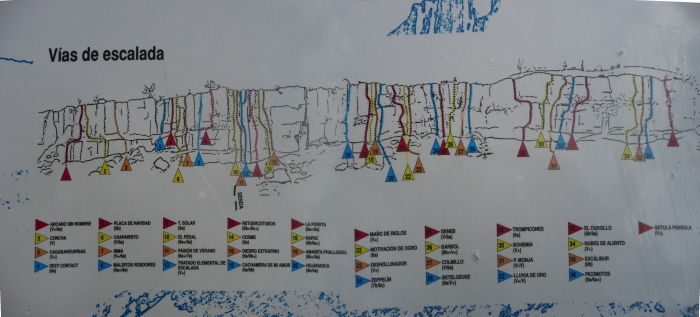 Las paredes están orientadas principalmente al este (sol por la mañana), la escalada resulta bastante peculiar y los primeros largos pueden estar algo sucios.