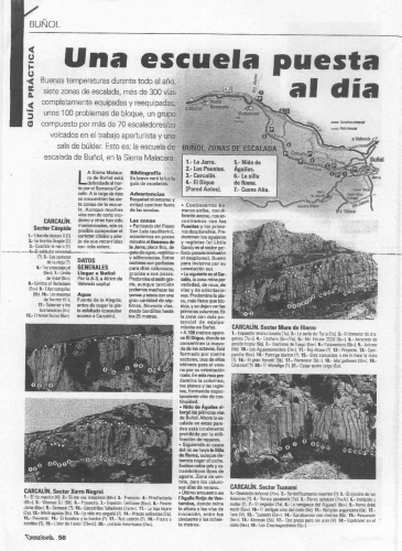 Fantástica escuela en Buñol, situada en el interior de la provincia de Valencia. Vías de todos los grados y roca de muy buena calidad. La zona está compuesta por multitud de sectores y más de 300 vías, donde podemos encontrar placas, desplomes e incluso bloques.
