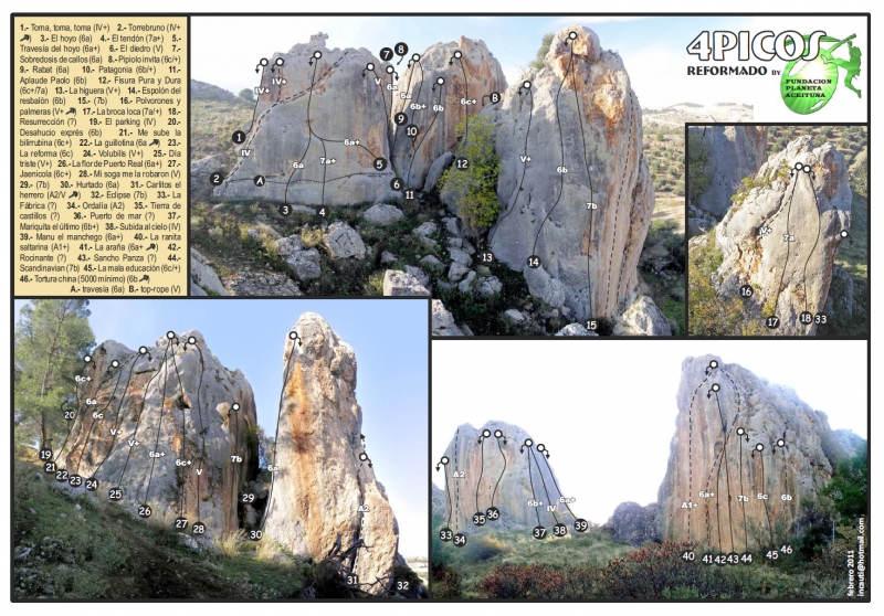 Es una zona de escalada formada por una serie de tochos aislados, de una veintena de metros como mucho, por lo que la escalada es de tipo bordillo. Es un lugar muy recomendable para escaladores principiantes, pues gran número de vías son de grado muy asequible. No obstante existen también vías de grado medio, así como vías muy técnicas de fisureros y artificial extremo.