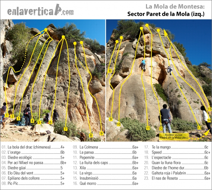 Montesa es, sin lugar a dudas, una de las escuelas de escalada deportiva más concurridas de la provincia de Valencia. Su escasa aproximación, la benevolencia en la cotación del grado de sus vías, su excelente equipamiento, junto con un llano y cómodo pie de vía hacen de Montesa un lugar idóneo donde iniciarse en el mundo de la escalada deportiva.