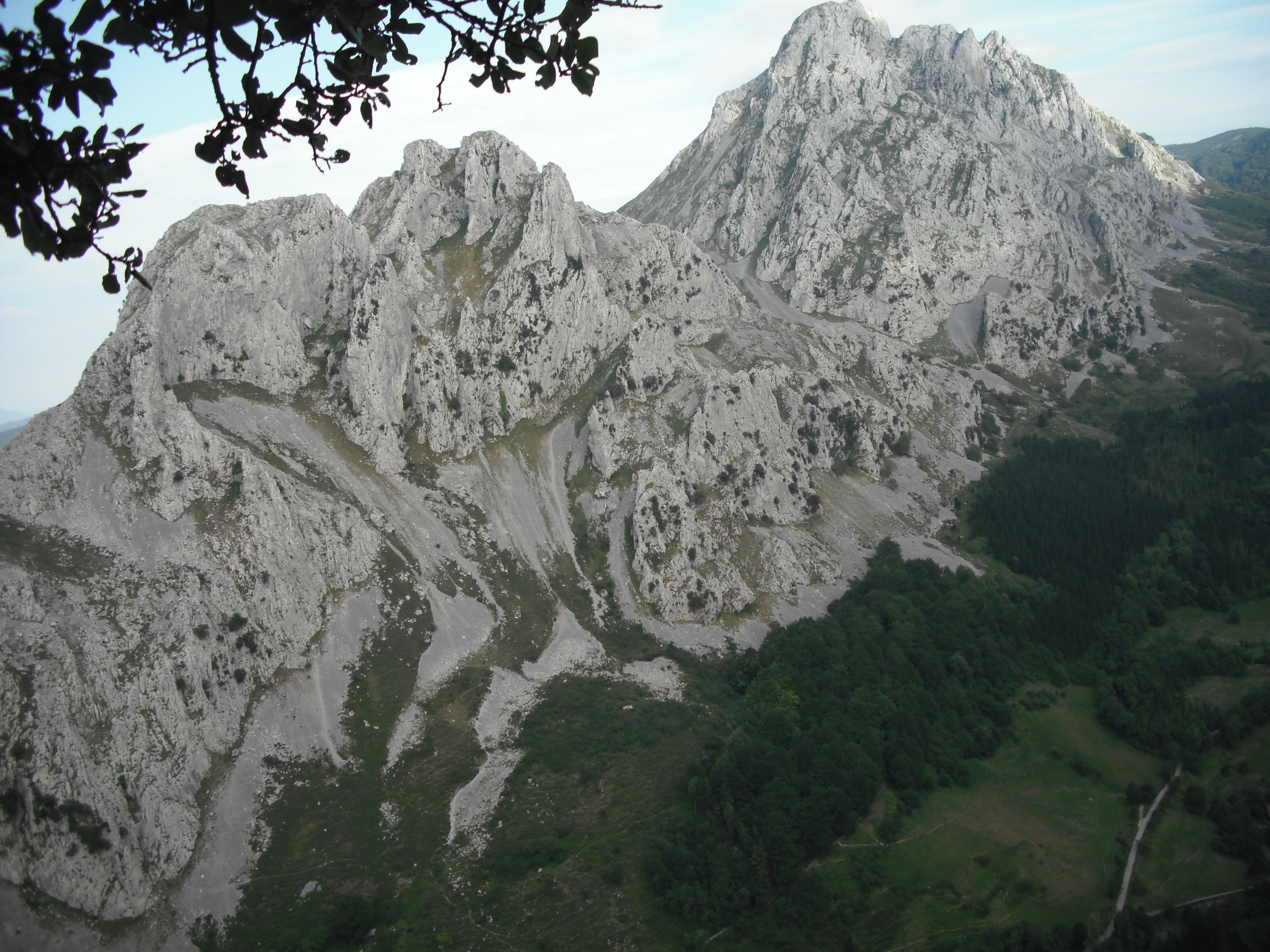 - La pared de la zona superior izquierda es la puerta donde predominan las vías de grado medio 6º-7º. Las agujas de la parte central son la zona de los espolones donde predominan las vías de V-6º de hasta tres largos. El monte de la derecha es el Alluitz que aunque también tiene alguna vía es más conocido por su bonita cresta y el famoso Paso del Diablo.