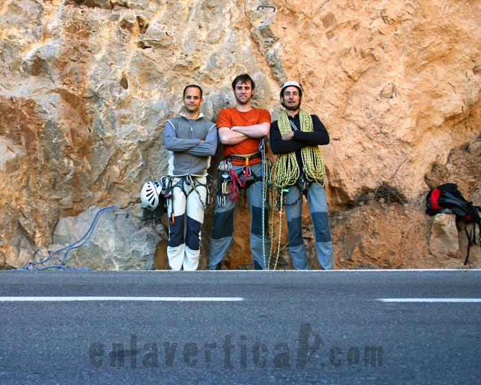 • A pie de vía - Como se ve en la foto, el pie de vía de este viote de las Fisuras de la carretera es prácticamente la propia carretera así que conviene extremar las precauciones para no tirar piedras durante la escalada y tener cuidado con los cohces al asegurar en el primer largo.
