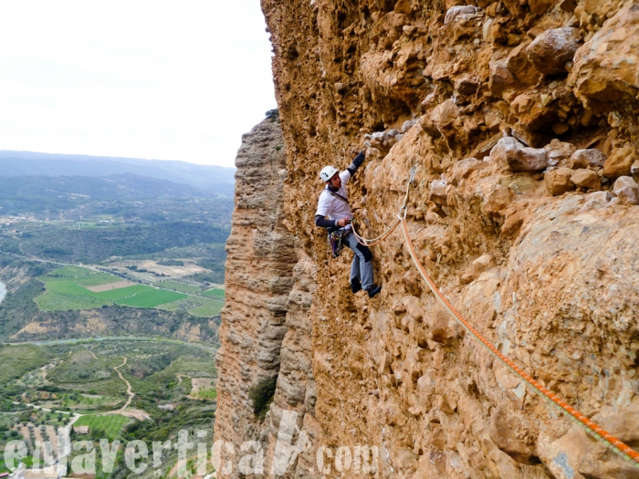 Es una pared con un impresionante desplome mantenido que se va acentuando con la altura.