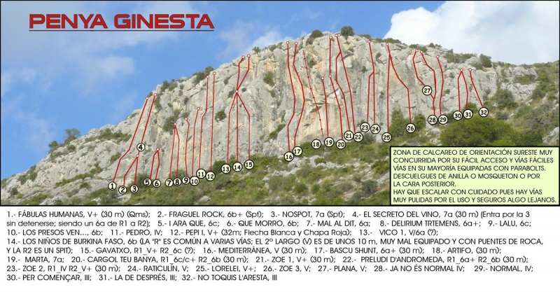 | Caragol treu banya | 6c+ | deportiva | Sudeste | 2 |